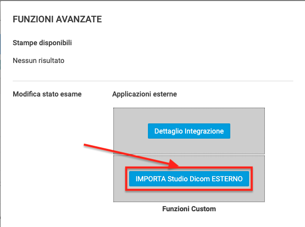 Questo strumento permette di importare studi DICOM provenienti da supporti esterni (come CD medicali o chiavette USB) nel sistema PACS aziendale. Durante l'importazione, lo studio viene associato a un paziente e a un ordine specifico presenti nel sistema informativo RIS.